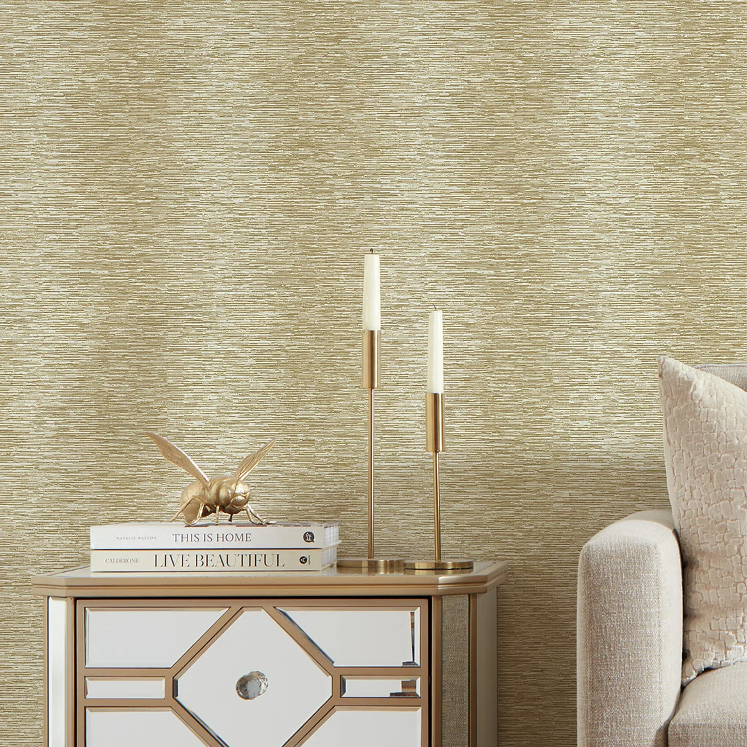 Create a captivating backdrop in your interior with our gold Camille wallpaper. Featuring a lustrous golden hue and a textured finish, it serves as the ideal canvas to transform your living space, dining area, or bedroom. For those seeking a lavish ambiance, pair with deep, sumptuous colours like royal blue or burgundy. Incorporate plush velvet or silk furnishings for a regal touch, and add crystal or metallic light fixtures for an extra layer of opulence. For a more contemporary and eclectic look, mix it with bold patterns, vibrant colours, and sleek furniture pieces.