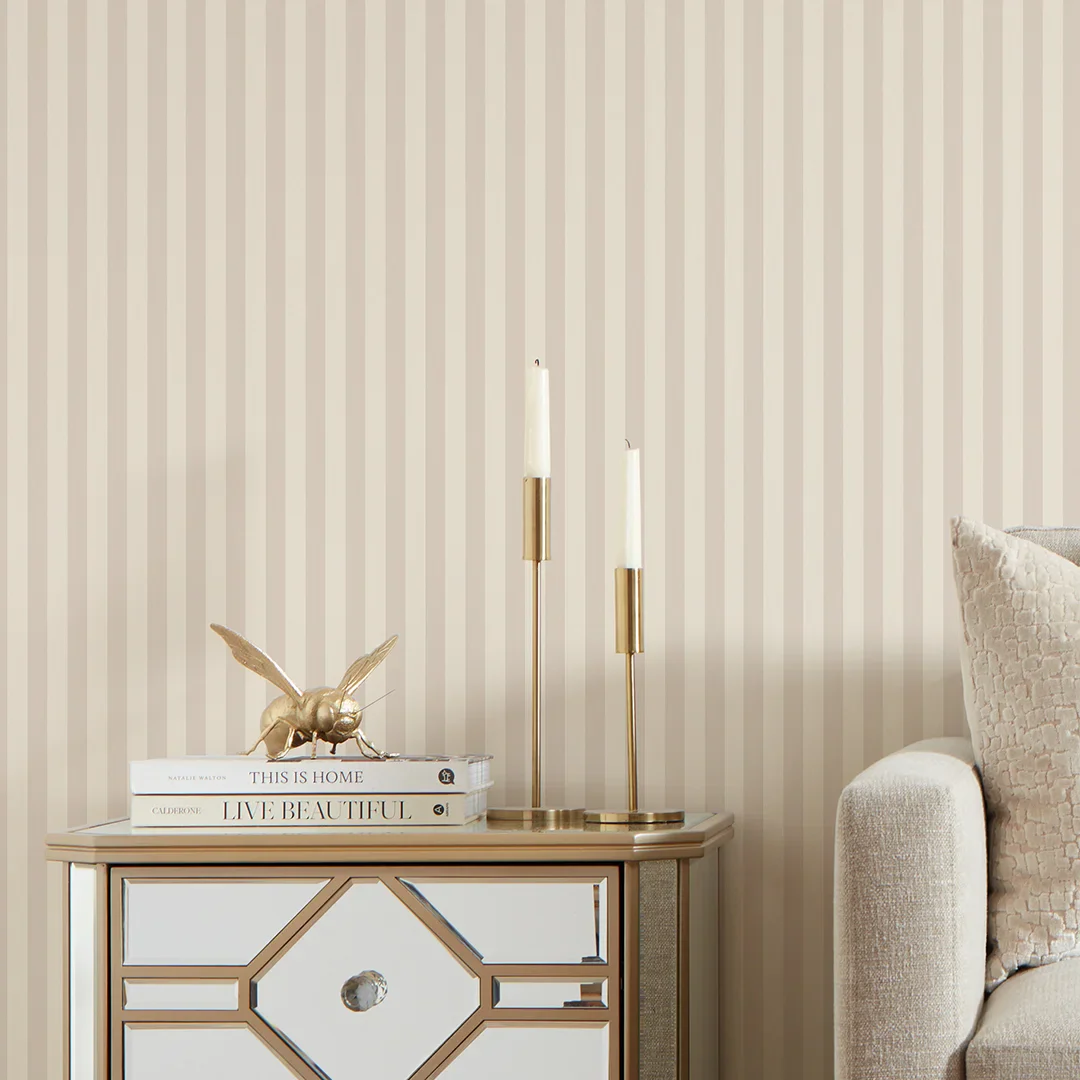 Classic Stripe Wallpaper in Cream and Truffle