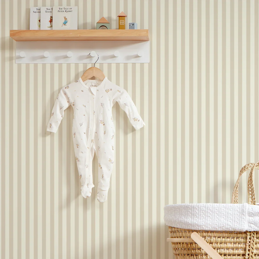 Classic Stripe Wallpaper in Magnolia and Sandstone
