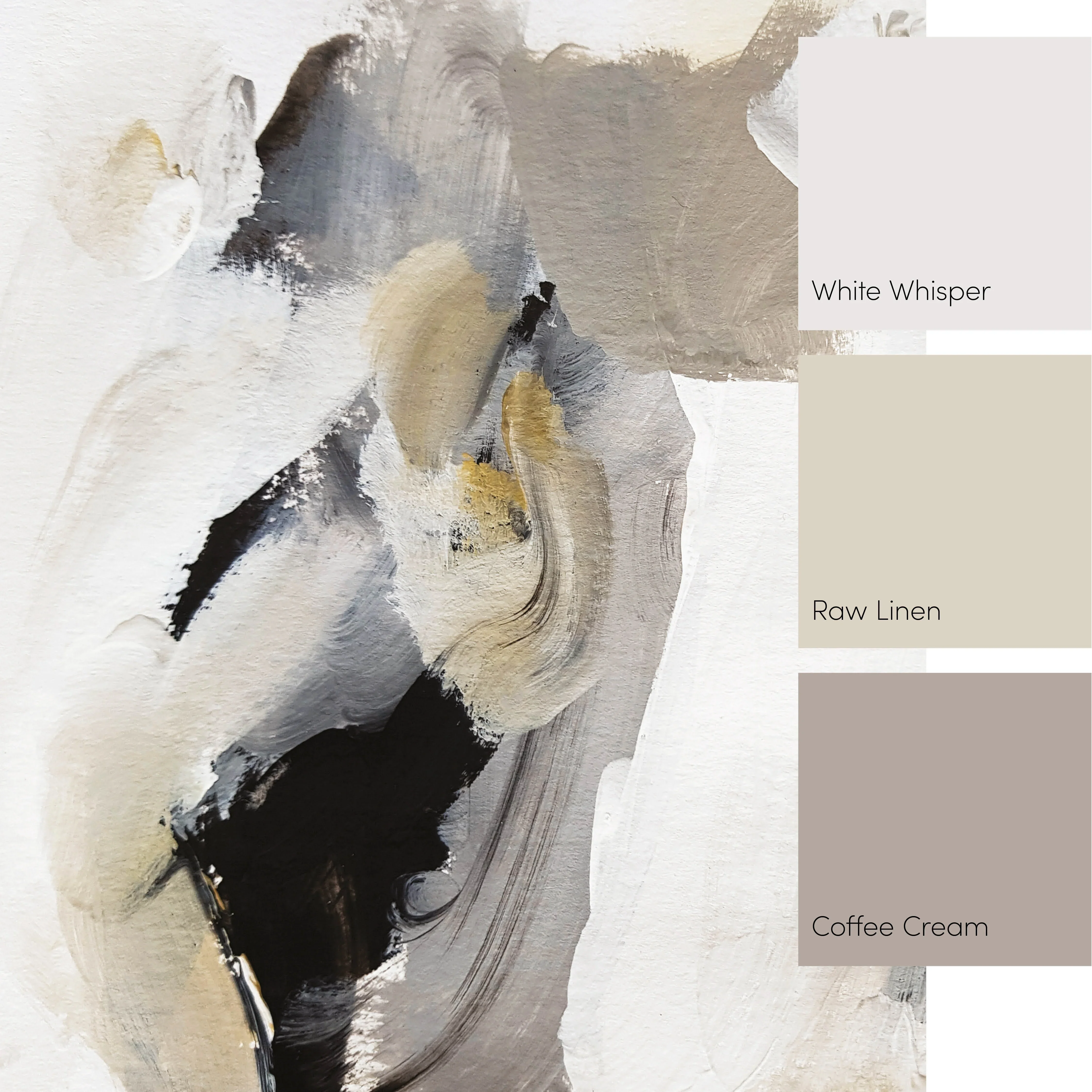 Unlock the artist in you! Add warm tones of charcoal, stone and white to your walls with this abstract paint effect design, perfect for creating a cosy, homely feel.
