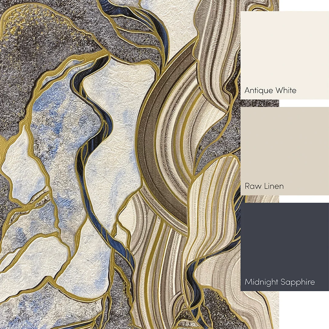 We suggest pairing one mural with a complementary paint or wallpaper with a standard pattern repetition.