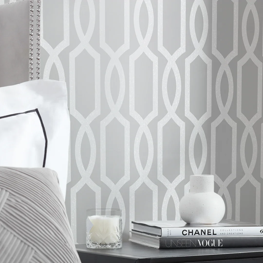 London Trellis Wallpaper in Silver