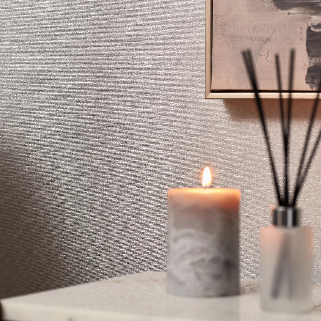 A no-fuss wallpaper that adds texture to any room, our Raze wallpaper is simple yet sophisticated. In a warm metallic silver colour, this plain wallpaper has a fabric like texture. Perfect for bedrooms, living rooms and hallways.