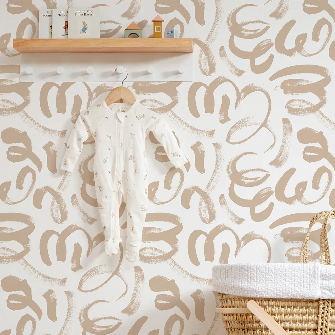 If you're looking for something alternative on your walls, Squiggle might be the wallpaper for you. This unique wallpaper features chunky beige brush marks that have been graffitied on a white backdrop, creating a unique design that will catch the eye. The squiggly pattern on this wallpaper is bold and striking, making it the perfect statement piece for any room. Whether you want to add a touch of texture to a bedroom or create a focal point in your living room, Squiggle is a fun and fantastic choice. The chunky brush marks give the wallpaper a tactile feel, adding depth and dimension to any space. With its neutral colour palette of beige and white, Squiggle is versatile and easy to match with other colours and decor styles.