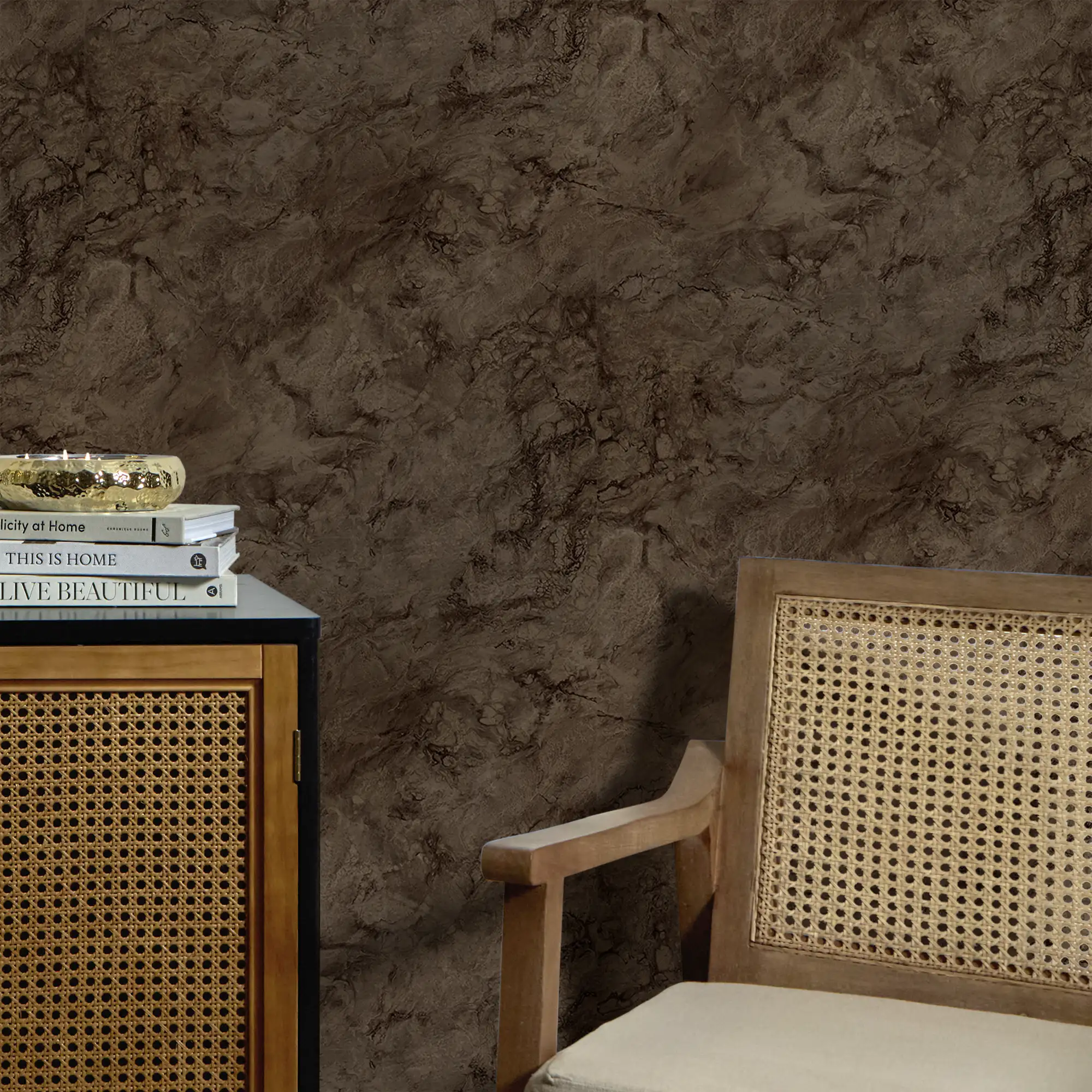 Introducing our Suede Shadow wallpaper, a true statement piece for those who seek depth and warmth in their interior design. This exquisite design captures the dramatic beauty of a deep, chocolate-toned marble motif, brought to life through intricate swirls and washes of rich coffee and indulgent cocoa hues. This design offers a unique sensory experience. Its subtle texture has been meticulously crafted to mimic the soft, luxurious feel of tactile suede. This unparalleled finish not only adds a layer of sophistication but invites touch, contributing to the overall sense of comfort. The deep browns and warm undertones are perfect for a bedroom sanctuary, a refined living area, or a dramatic study.